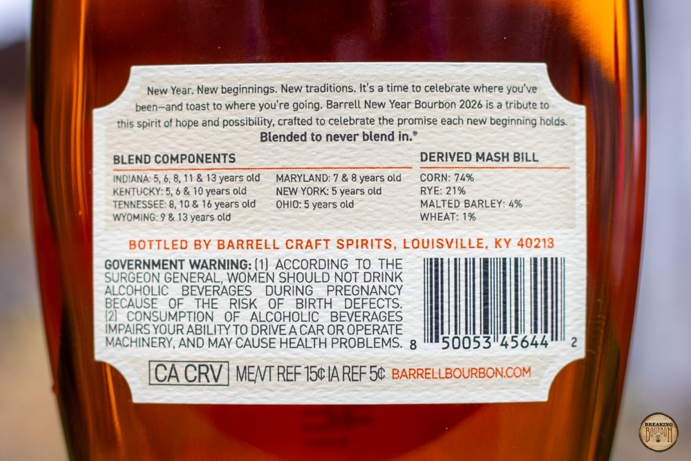 Combining 17 bourbons from seven different states, Barrell Craft Spirits New Year 2026 is a well-balanced sipper with bright fruit notes.