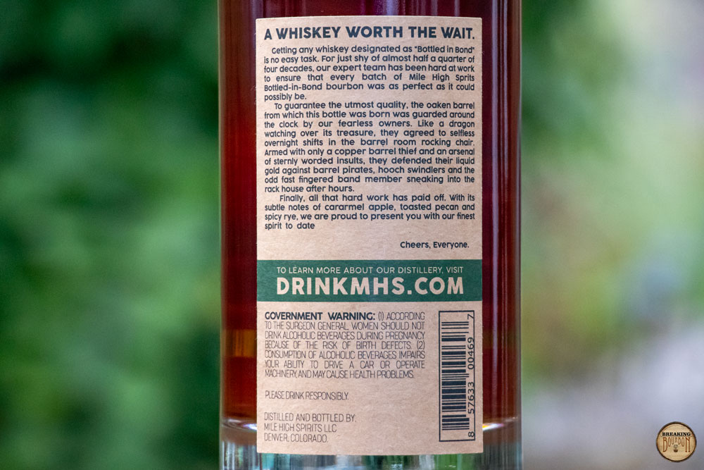 Mile High Spirits, based in Denver, Colorado, exemplifies a distillery that works hard and continuously improves its products. Many of their whiskeys use a unique blend of grains, elevating them from just another craft whiskey to something much more memorable and distinctive. We’ve tasted their bourbon and wheated bourbon for many years now, but their rye doesn’t quite get the same level of attention as their bourbons. Some of that has to do with the variations of their rye mashbills used. For now, though, their core Bottled in Bond Rye showcases a good amount of character that you don't often see in a 4 year old rye.