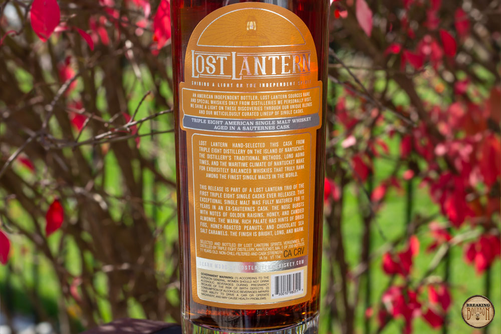 Lost Lantern Triple Eight Sauternes Cask Aged Massachusetts Single Malt 11 Years Old is a 229 bottle release.