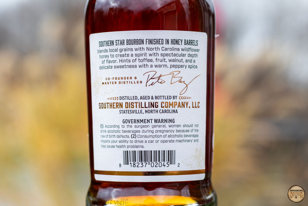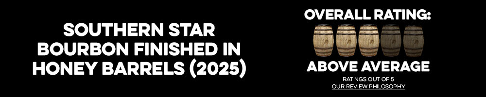 In order to produce their honey finished bourbon, Southern Distilling Company first aged their bourbon for 7 years, followed by finishing it for 12 months. This extended time in the finishing barrel heavily influences the sip from start to finish and borders on being almost too much honey influenced at points. Thankfully, the bourbon's proof allows a few other flavors to push through and add a touch of balance to the overall sip. There is no doubt that this bourbon is anything but a honey finished bourbon, and if you’re looking for a sip that is on the sweeter side, you’ll feel right at home with this year’s release of Southern Star Bourbon Finished in Honey Barrels.