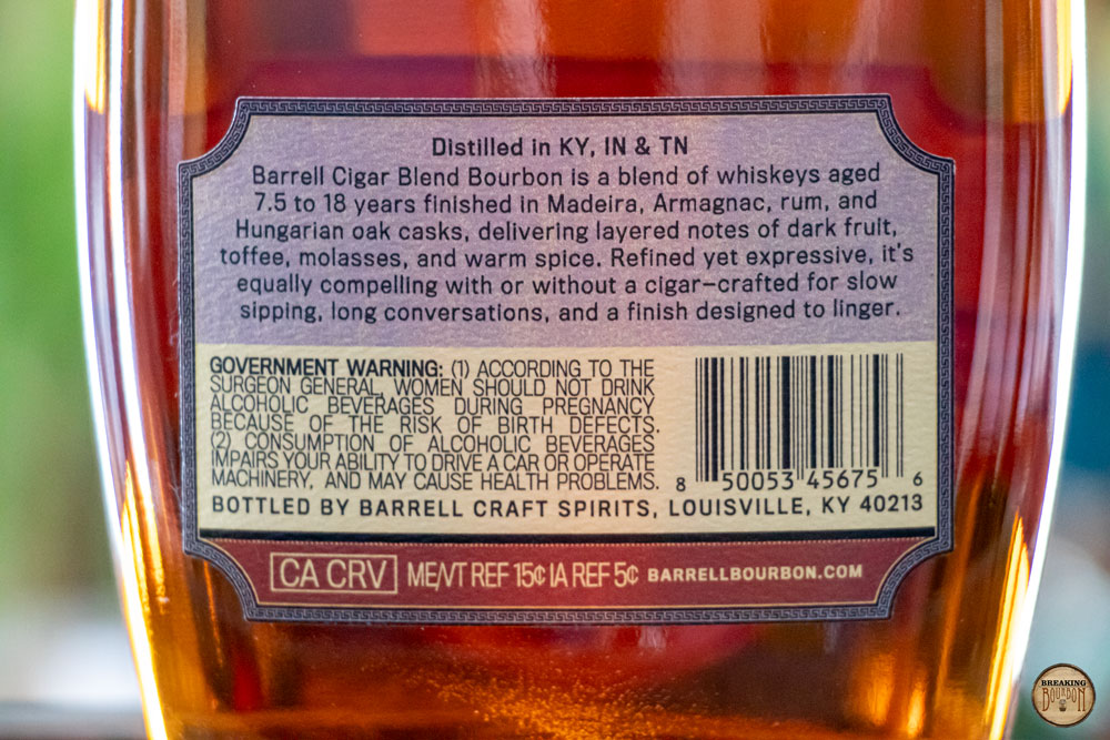 Providing their take on a cigar blend bourbon, Barrell Craft Spirits displays why they are so well known when it comes to artfully blending whiskey.