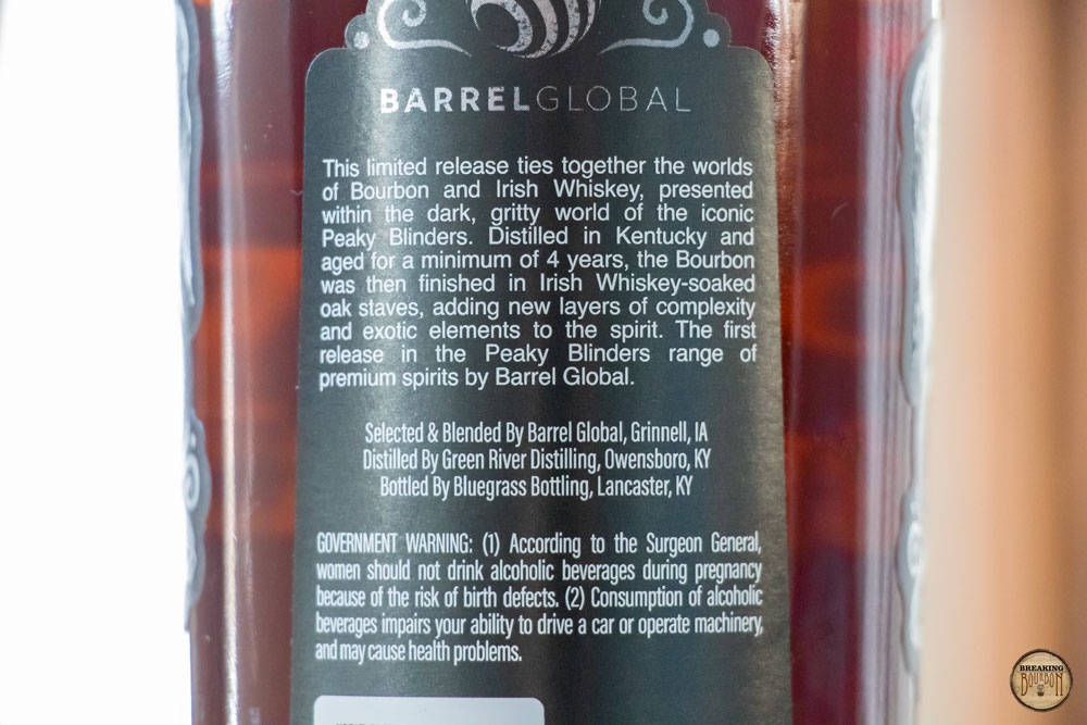 Paying tribute to the Shelby family from the show, the whiskey was sourced from Green River Distillery and aged for 4 years, before being finished for an undisclosed amount of time with Irish whiskey-soaked oak staves. While stave finishing is common, utilizing Irish whiskey-soaked staves is less so. The company states that this finishing was “inspired by the Shelby family heritage and their transatlantic influence in later seasons.”