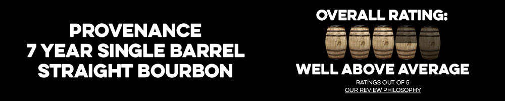 1787 Provenance 7 Year Single Barrel Straight Bourbon delivers a potent, candy bar-like flavor profile with strong nut and brown sugar notes that its 107 cask strength proof point carries well.
