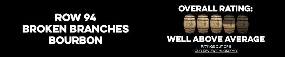 Row 94 Broken Branches Bourbon is a sweet and fruity bourbon, complemented by a contrasting dry and oaky finish, making it an enjoyable, albeit limited and pricey, sipper.