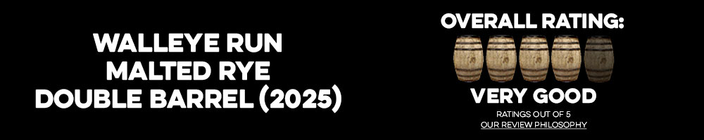 Walleye Run Malted Rye Double Barrel is a uniquely flavorful and boldly spiced malted rye, elevated by toasted barrel finishing, offering a distinctive departure from typical rye profiles.